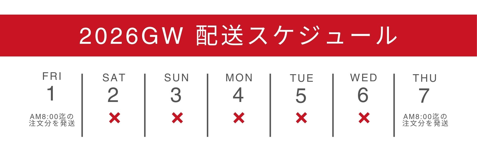 【お知らせ】2026GW期間の出荷スケジュールについて