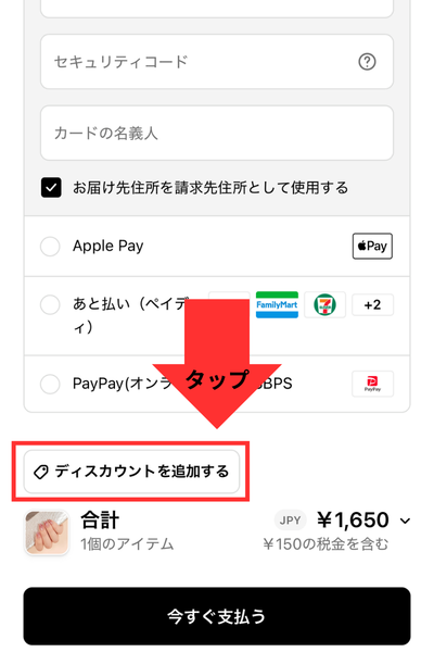 画面下へスクロールすると、「ディスカウントを追加する」のマークがあるので、タップ