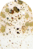 クロームコーティングの光沢がある、乳白色ベースのグラデーショングリッターネイルです。