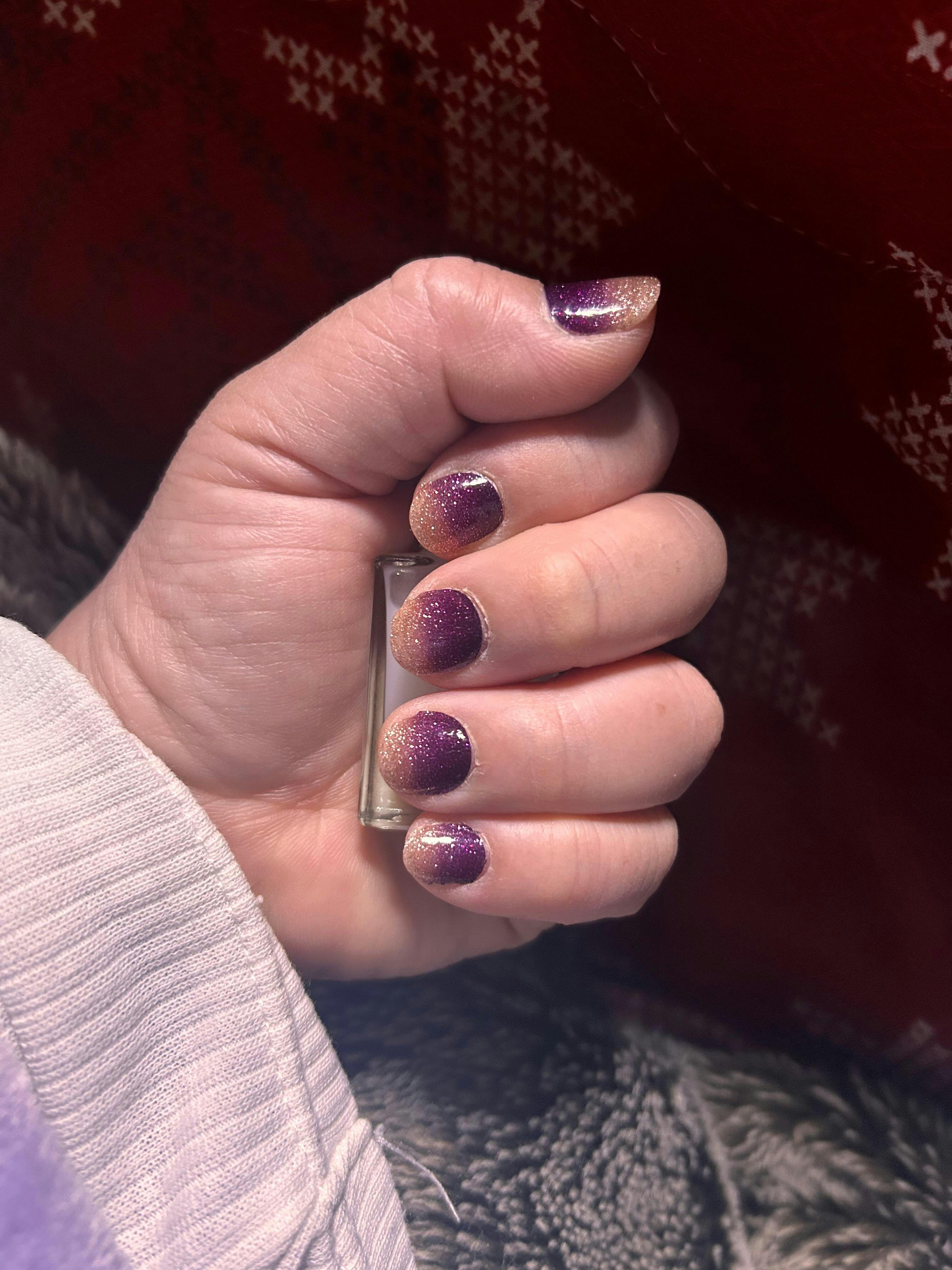 ボルドーとピンクのグラデーションネイル。