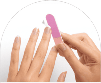 爪からはみ出た余った部分は親指でカットするか、付属のやすりで切り取り、整えます。